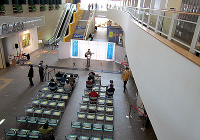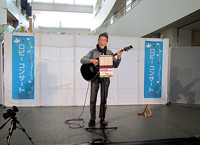 かねてから準備していた白石区役所まちづくりイベント広場でのライブの日だった。広場は昨年11月に新規移転オープンした区役所地下2階にあり、何もかもが新しく、吹き抜けのある大空間は明るくて伸びやかな印象だ。