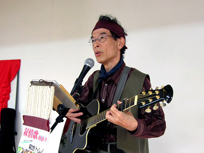 時間の都合で一部の歌詞を省略したが、2曲ともギターに合わせて歌う声と手拍子とが広場内に響き、エンディングにふさわしい盛り上がりとなった。