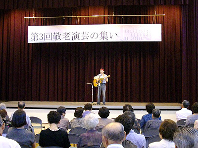 あまりにノリが良過ぎ、最後まで聴き手の元気が持つかどうか不安になってきた。そこで予定を少し早め、じっくりしんみり聴いてもらえる唱歌童謡を2曲続けて歌う。しかしここでも一緒に歌ったり、軽い手拍子が入ったりし、強いノリノリ気分は衰えを見せない。前列に座っていた介護度の強い方々も、唱歌童謡になると生き生きと目が輝きだす。唱歌童謡には日本人の魂に訴えかける強い力があると再認識した。