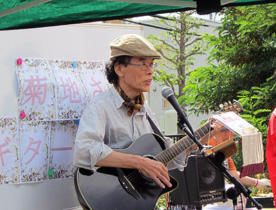 入口付近で機材を組立てつつ、設営が終わるのを待ったが、始められたのは13時10分あたり。およそ35分で12曲を歌った。