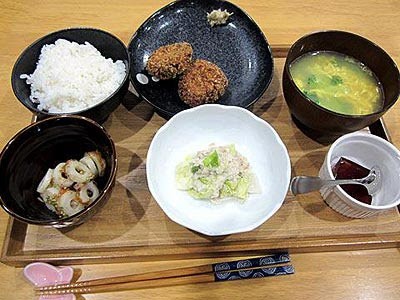 先方の希望する13時の10分前には着いたが、会場となる食堂ではまだ昼食のテーブル配置がそのままで、ライブの態勢が整っていない。