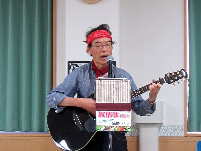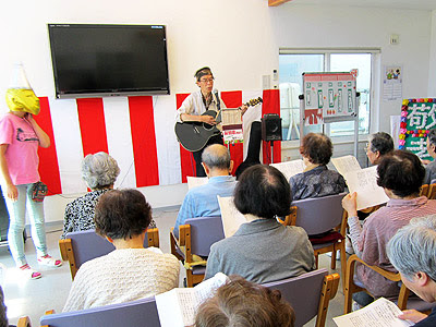 市内遠方にあるデイサービス秋祭りで歌った。怒涛の敬老月間ライブの8本目となるが、今回の施設では先月も歌ったばかり。一昨年に最初の依頼があってから定期的な依頼が続いていて、今回が実に7回目。