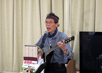 介護施設系ライブの構成で、最も気を配るのは曲順とその曲調。たとえば1曲目なら、ノリがよくて明るい曲調で場をつかむ。「北国の春」「憧れのハワイ航路」「高原列車は行く」などを季節に応じて歌い分けている。