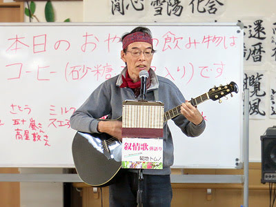 やがて正味1時間が経過。他施設の平均演奏時間よりは遥かに長い。施設の求めには十二分に応えたので、ラストの曲でにぎやかにシングアウトして終えたが、なぜか場が納得していない雰囲気。