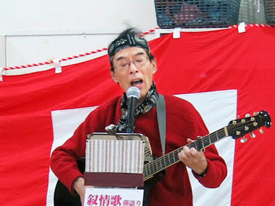 黒豆煮汁での対策が効いて咳喘息の影響はほとんどなく、喉は快調。次第にライブが熱を帯び始めた矢先、3曲目の「真室川音頭」のラストでギターに突然の異音。そう、魔の弦切れである。