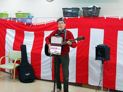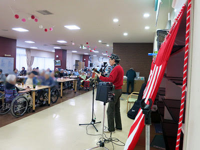 2020年の初ライブとして、市内遠方の老健施設で歌った。昨年5月にネット経由で最初の依頼があり、自由参加形式で小規模な部屋で歌ったが、手応え抜群だった。