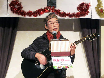 開始時点での聴き手は10名ほど。30席ある会場は閑散とした印象だったが、これは初回と同じ傾向。歌い進むうちにジワジワと人が集まってくるのも同じ流れだった。