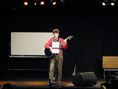 予定通りに進んで、18時40分くらいに私の出番。4年ぶりとはいえ、慣れた場なので大きな緊張はない。前回と違っているのは、早めの時間帯で客席が明るく、聴き手の顔がはっきり見えることくらい。しかし、介護施設ライブでの明るさと比べると、まだまだ薄暗い。