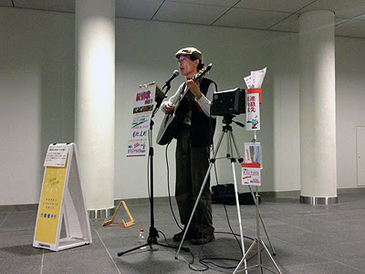 実は第2ステージは当初9曲ほどで終えるつもりでいた。ところが30分近く歌っても立ち止まる人は全く現れない。このまま帰るのも何だかしゃくなので、(聴いてくれる人が現れるまで歌ってやろう…)という奇妙な反骨心が芽生え、結果として丸1時間休憩なしで、以下の17曲を一気に歌った。