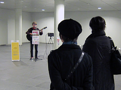 続けて歌ったラストの「天使のウィンク」では一気に聴き手が復活したので、第2ステージ8曲のなかで、「舟唄」だけが流れに沿ってなかったのだろう。何者にも束縛されていない通りすがりの聴き手の判断は時に冷酷だが正直、つまりは的を射たものである。これだけでもストリートで歌う価値がある。第2ステージでもCDが1枚売れた。何とこの方が大阪からの旅行者で、趣味で各地のストリートシンガーを探訪し、ブログにも記しているそうである。いろいろな巡り合いがある。そこもストリートライブの得難い魅力。