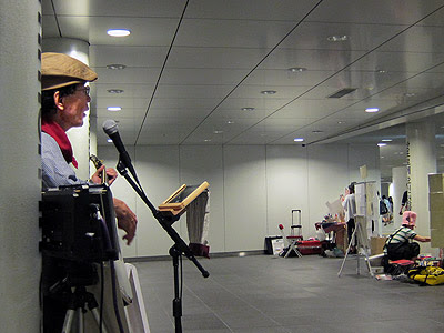 集客に大きく影響するのは、おそらく立ち位置。通りからかなり後退した位置で歌わざるをえないので、関心をもって目をむけてくれても、そこから数歩近寄ってくる人が少ない。