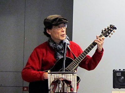 一気に人が増えたのは、4曲目の「白い想い出」から。50年前にダーク・ダックスが歌った、かなりマニアックな曲で、正直いって苦し紛れの選択である。しかし、それがなぜか受ける。最近あまり歌っていない叙情歌系の曲だが、歌ってみるものだ。