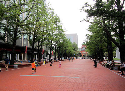 この日は通りの完全な中央に立ち、旧北海道庁を背にして東を向いて歌っていた。つまり、昨日とは180逆転した位置だ。街灯は南北のベンチに沿って立っているので、光は顔に当たりにくい。