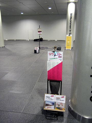 この日も3組の共演だったが、普段やや遅れてやってくるパフォーマーだったので、早めに会場入りする。案の定広場には誰もいず、事務局での受付も私が最初。2種類の看板を持ち、久しぶりにトップで演ることになった。