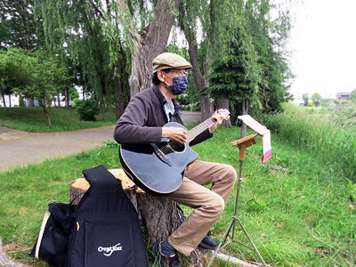 河畔公園を利用した路上ライブ「リバーサイドsolo」の第2弾を実施。初回を仕掛けてから、丸2ヶ月が経過している。当初は月イチペースでやるつもりが、連日の30度を超す暑さで、かなり間があいた。